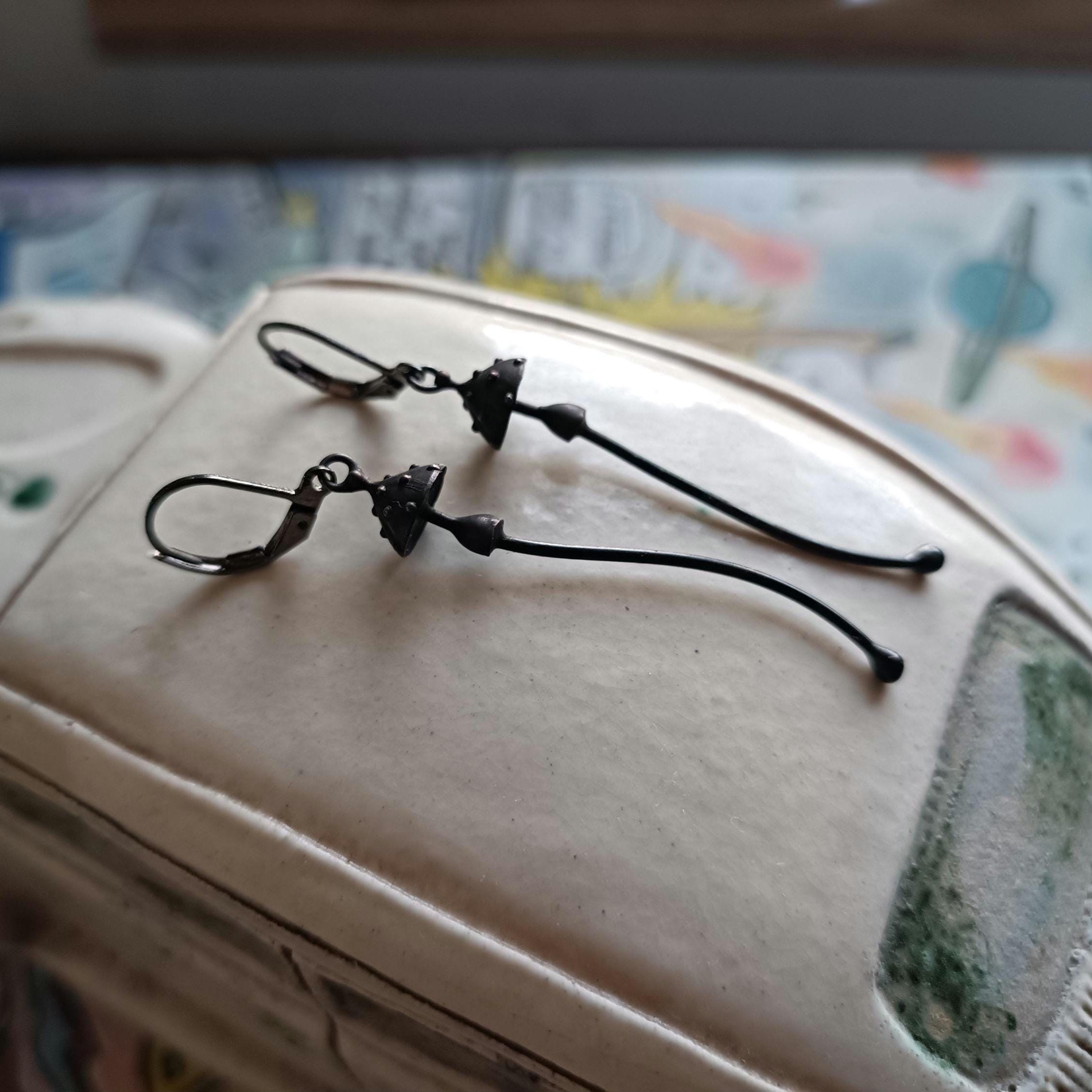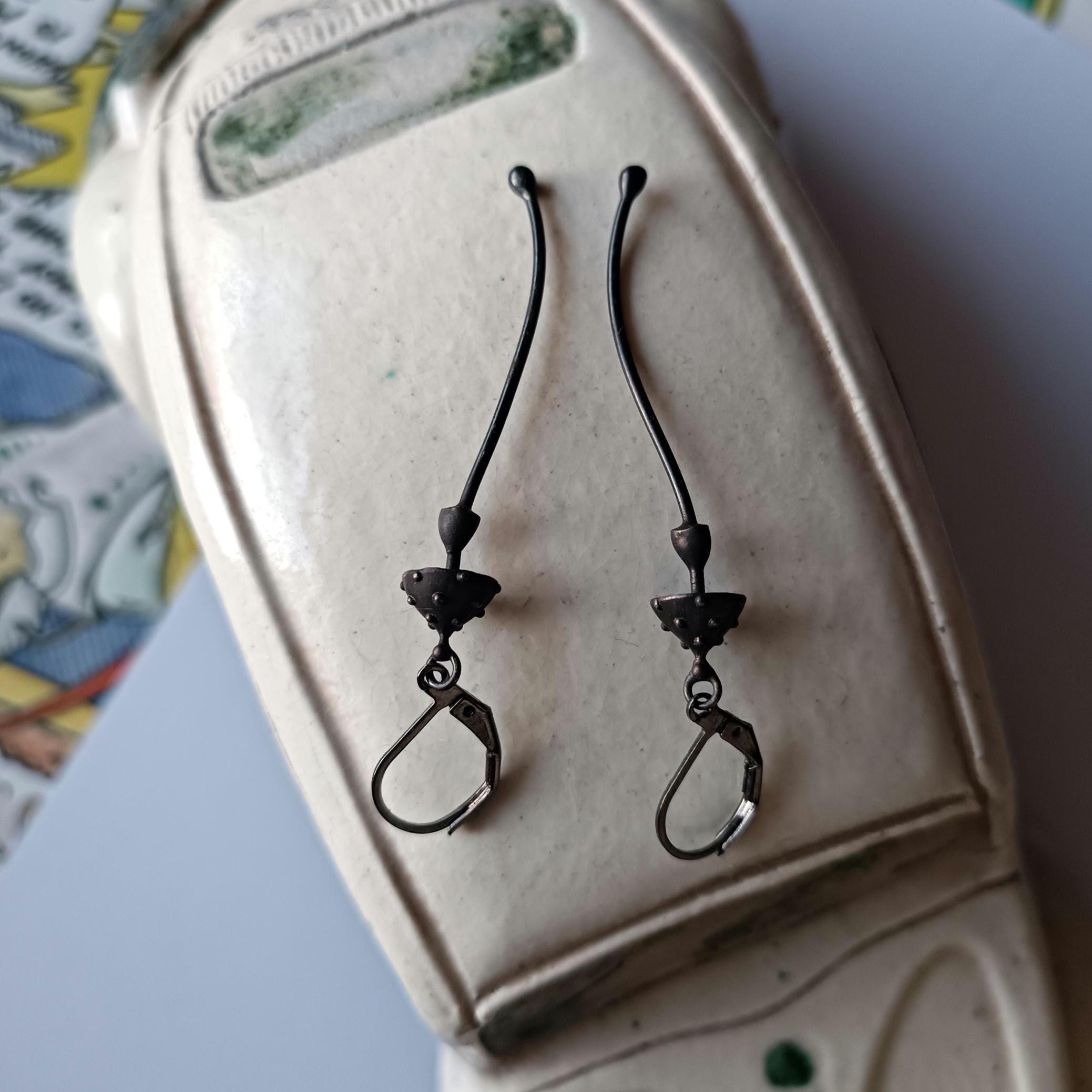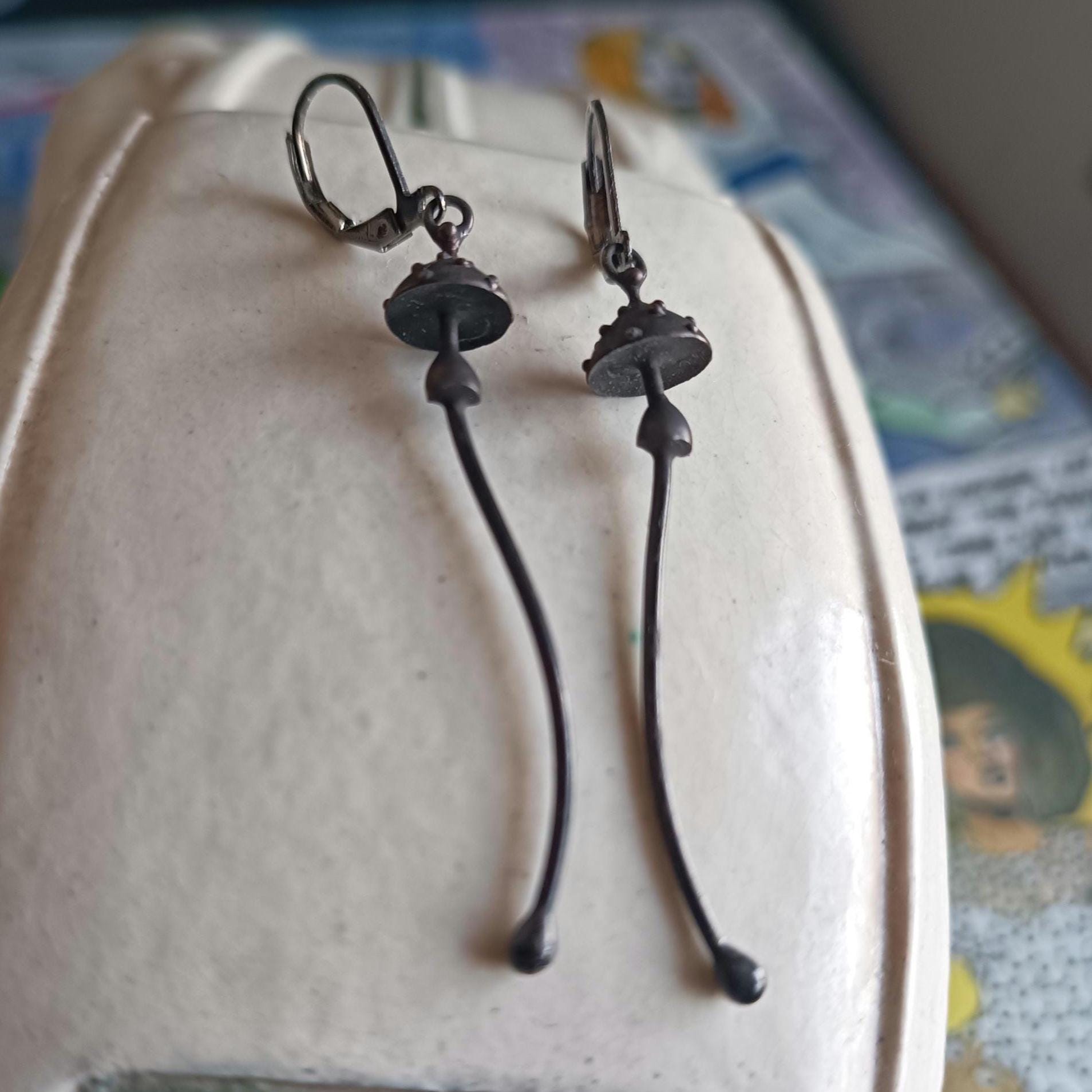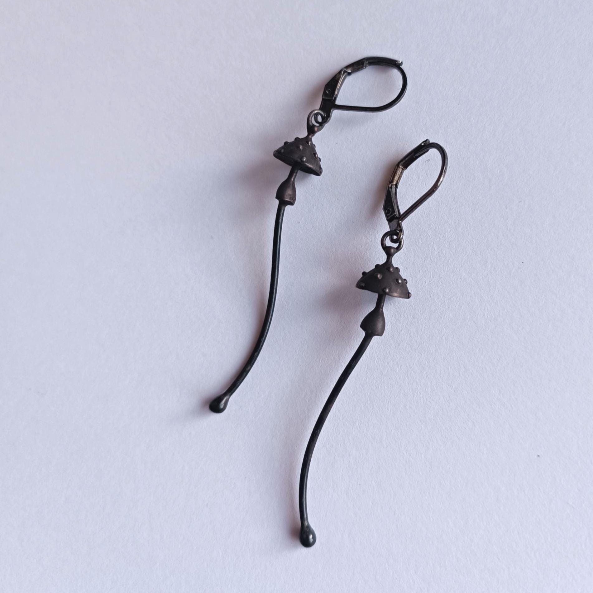 Amanita mushrooms unusual boho hippie earrings made from copper, pewter, steel. Unusual, light and solid amanita mushroom forest witch style earrings. All elements are handmade, which ensures the individuality of each product made in the Yadovito workshop. The tin-copper alloy is polished with a finishing solution to give the jewelry a noble appearance and at the same time so that the metal does not oxidize. Each mushroom jewelry looks individually, because mushroom caps are made by hand, and not cast or stamped. Size: about 5 cm (1.9 in). The sizes are coordinated with the customer. Color: silver.