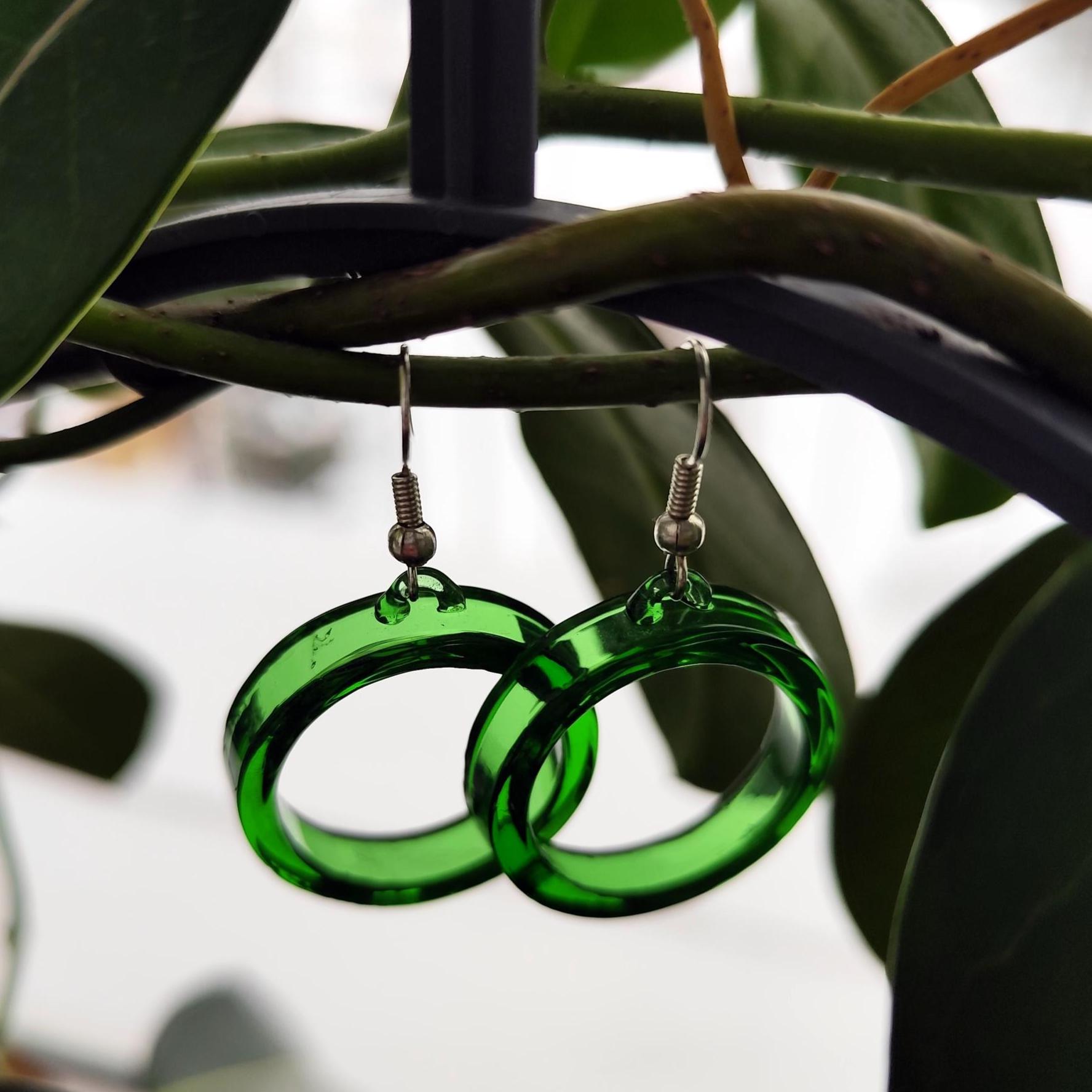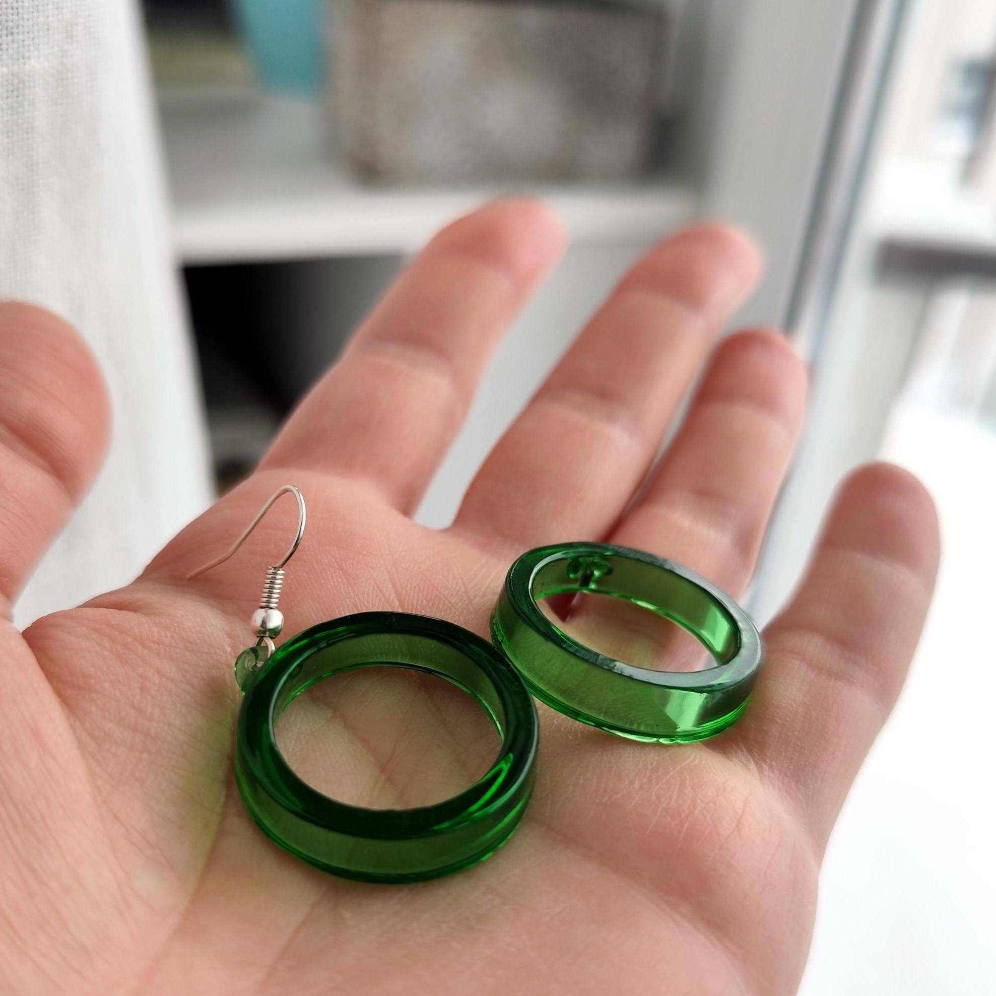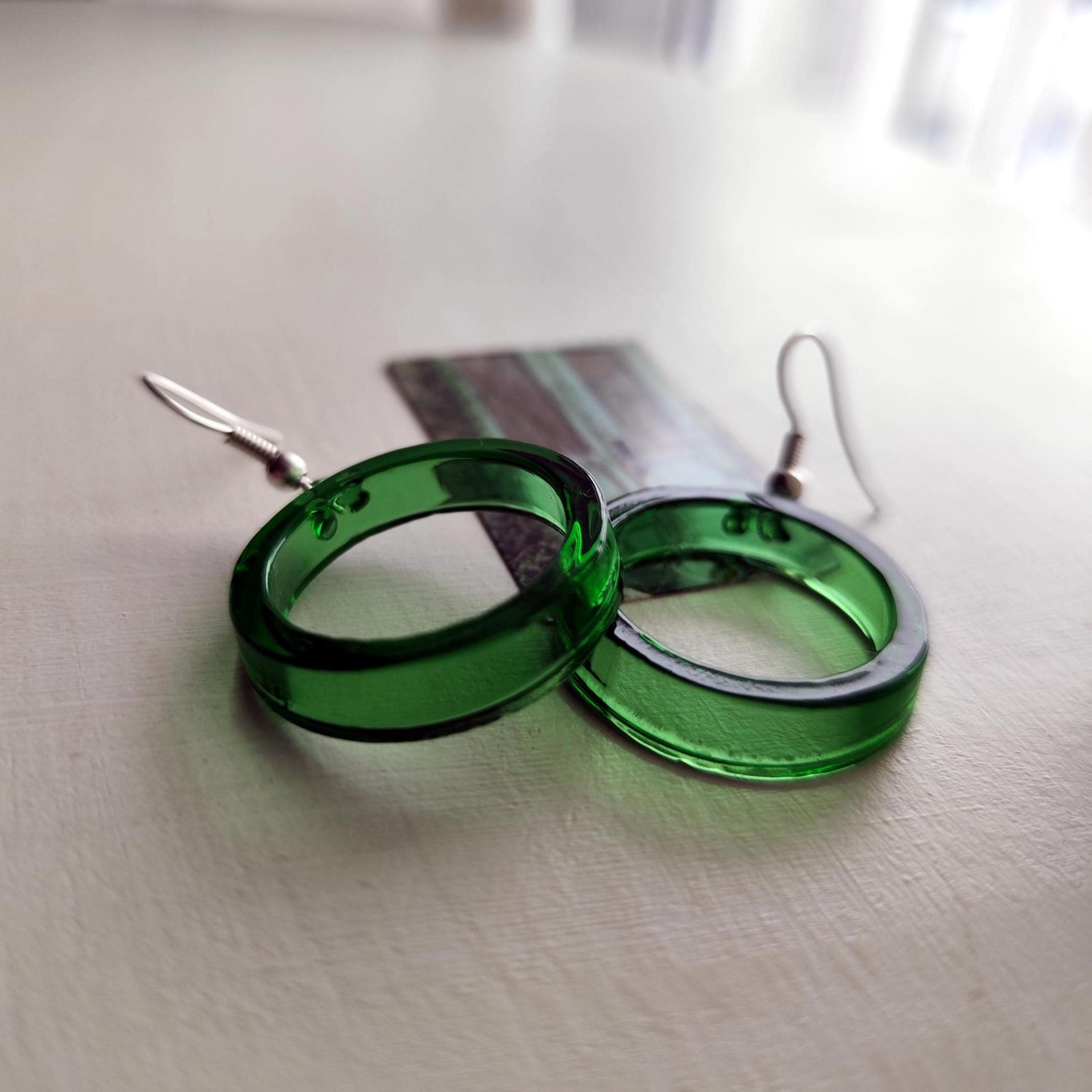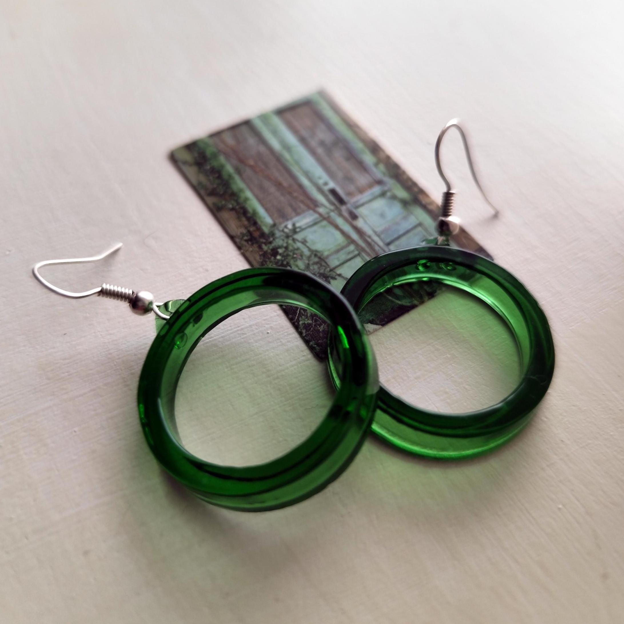 Handblown green glass minimalist hoop earrings all elements are handmade, which ensures the individuality of each product made in the Yadovito workshop. Diameter about 3 cm (1.15 in). Color green.