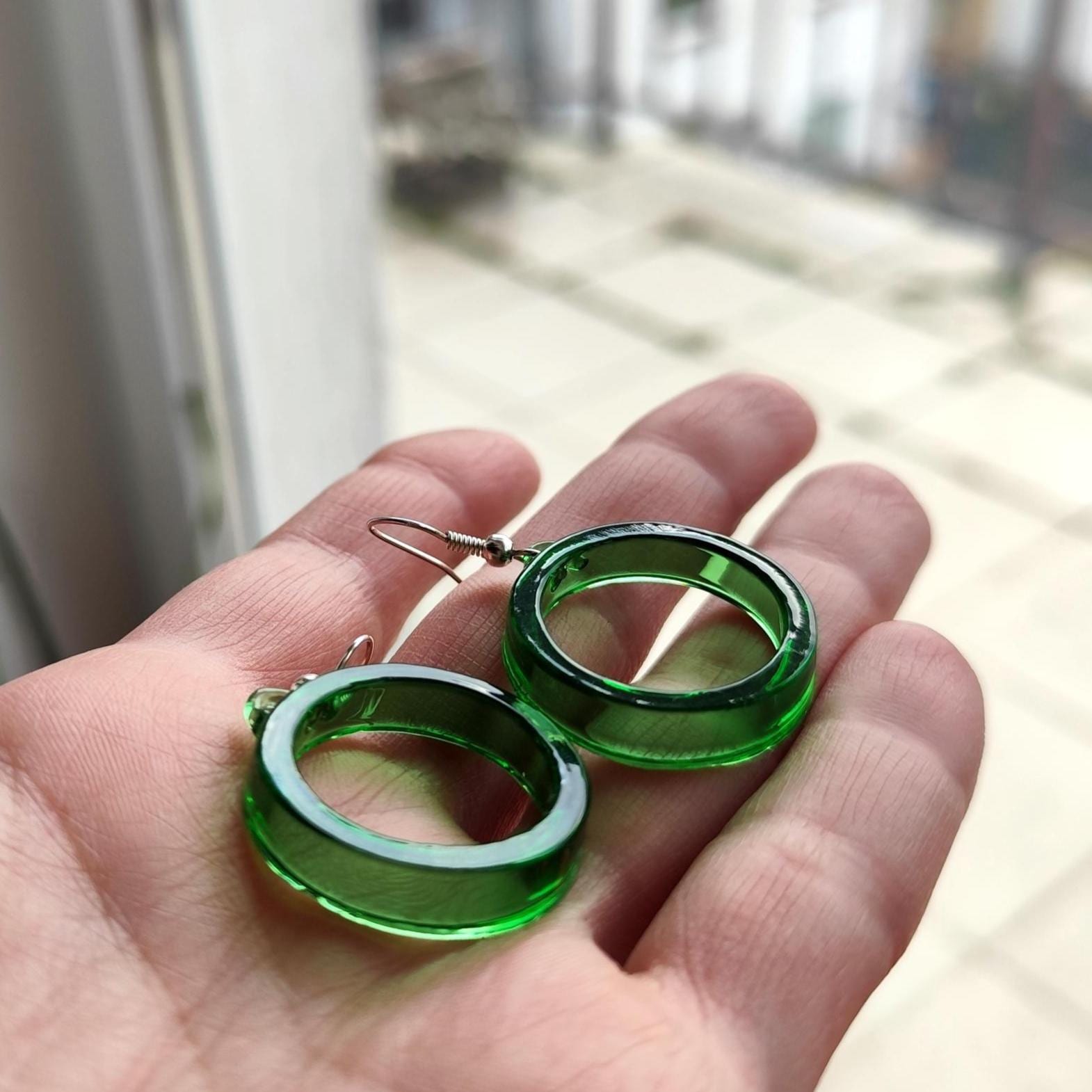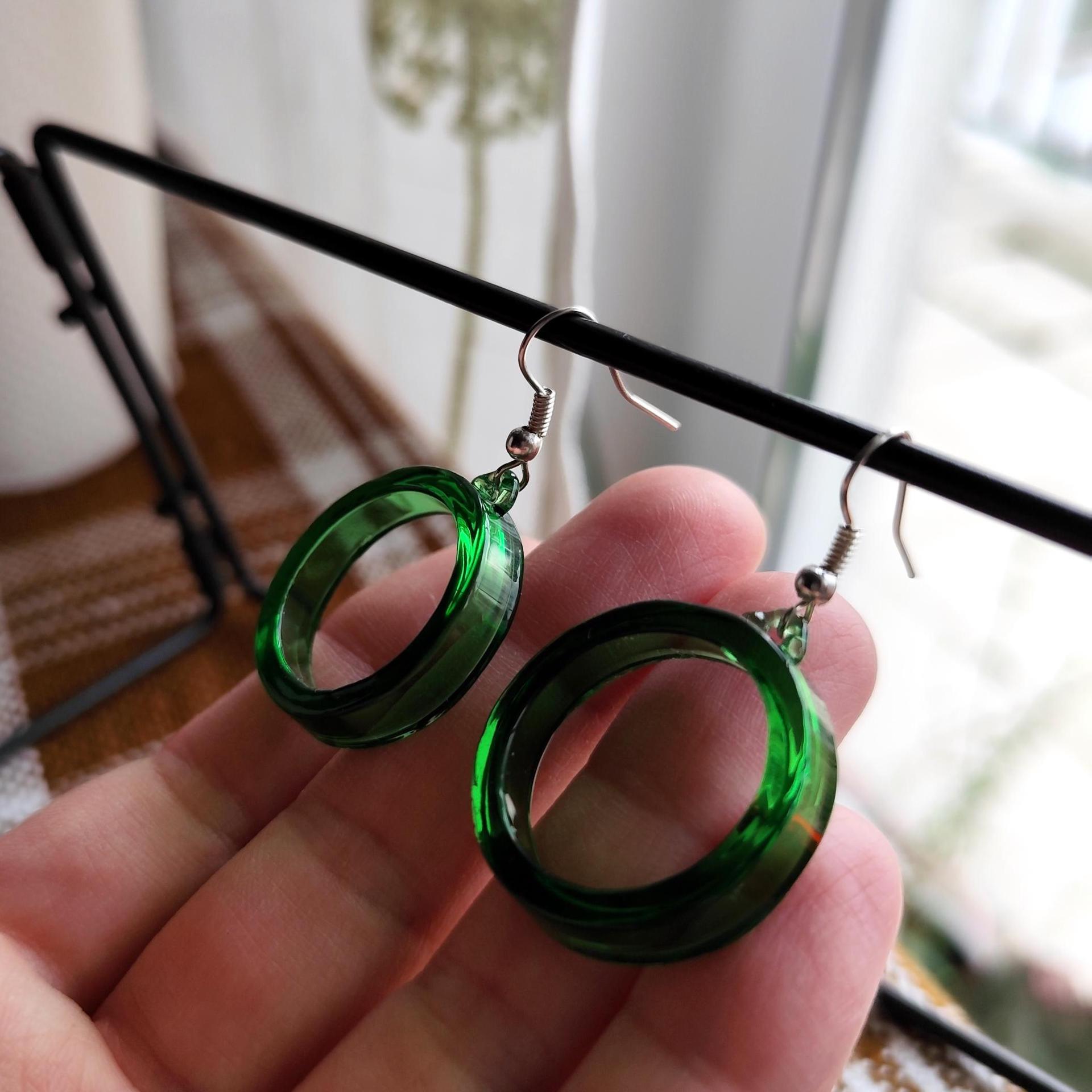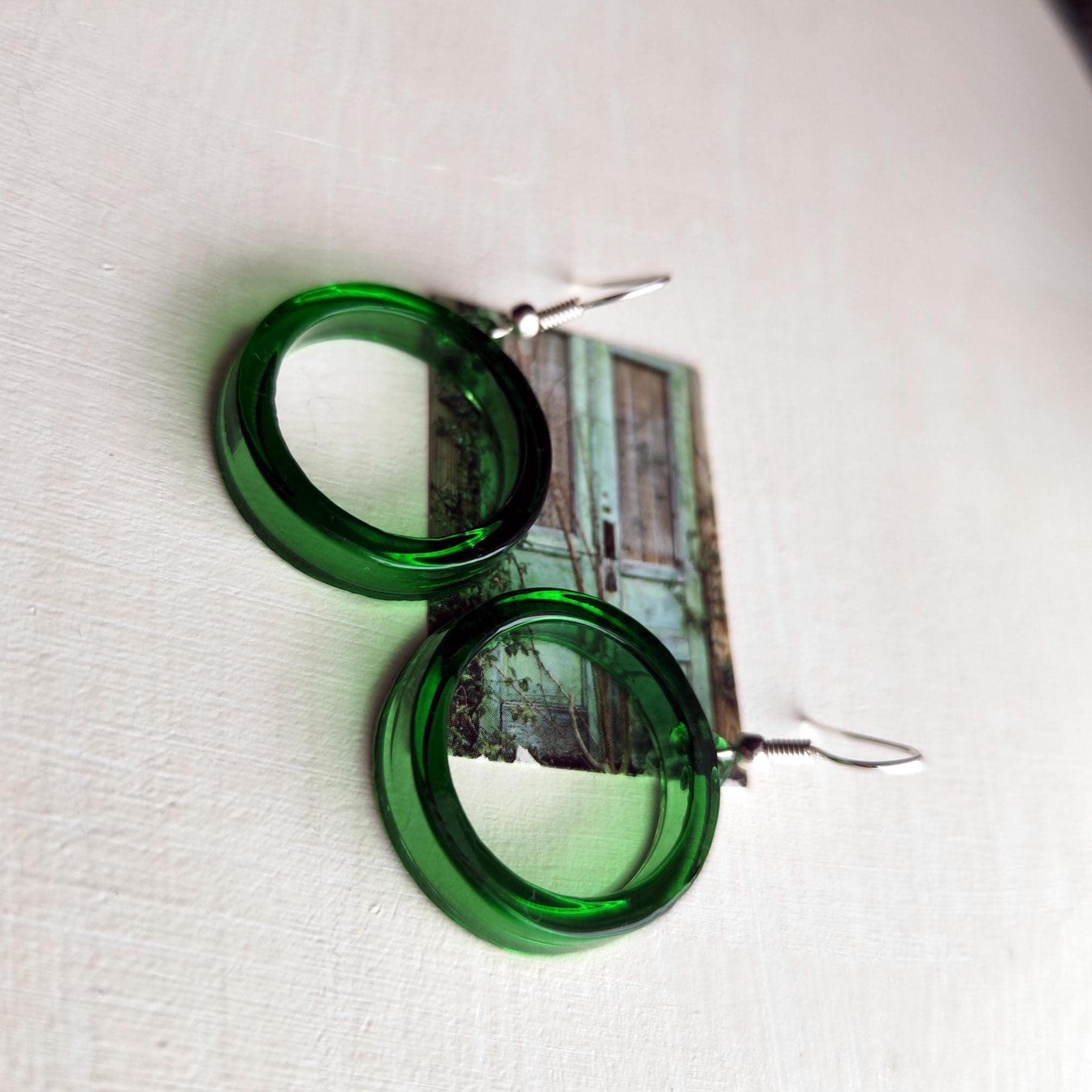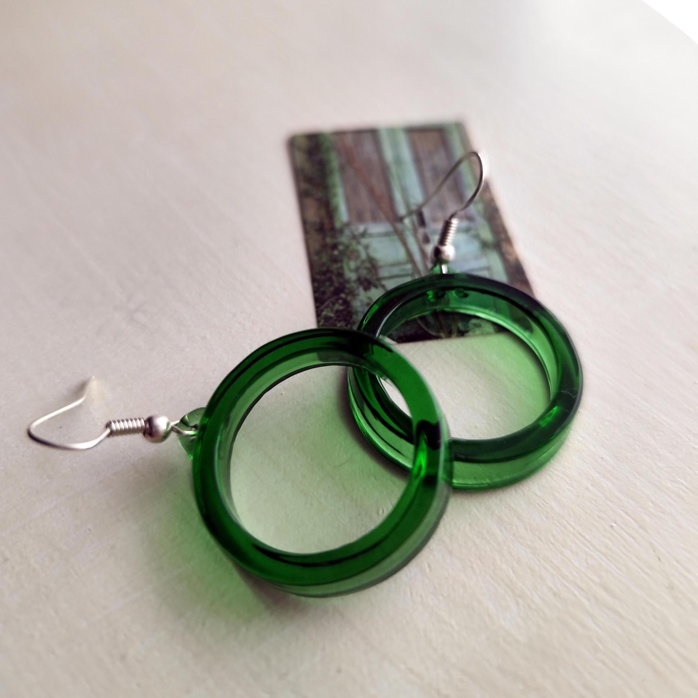Handblown green glass minimalist hoop earrings all elements are handmade, which ensures the individuality of each product made in the Yadovito workshop. Diameter about 3 cm (1.15 in). Color green.