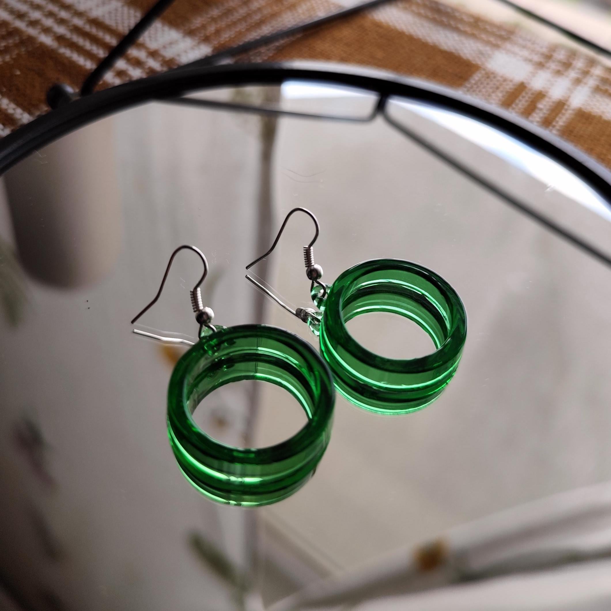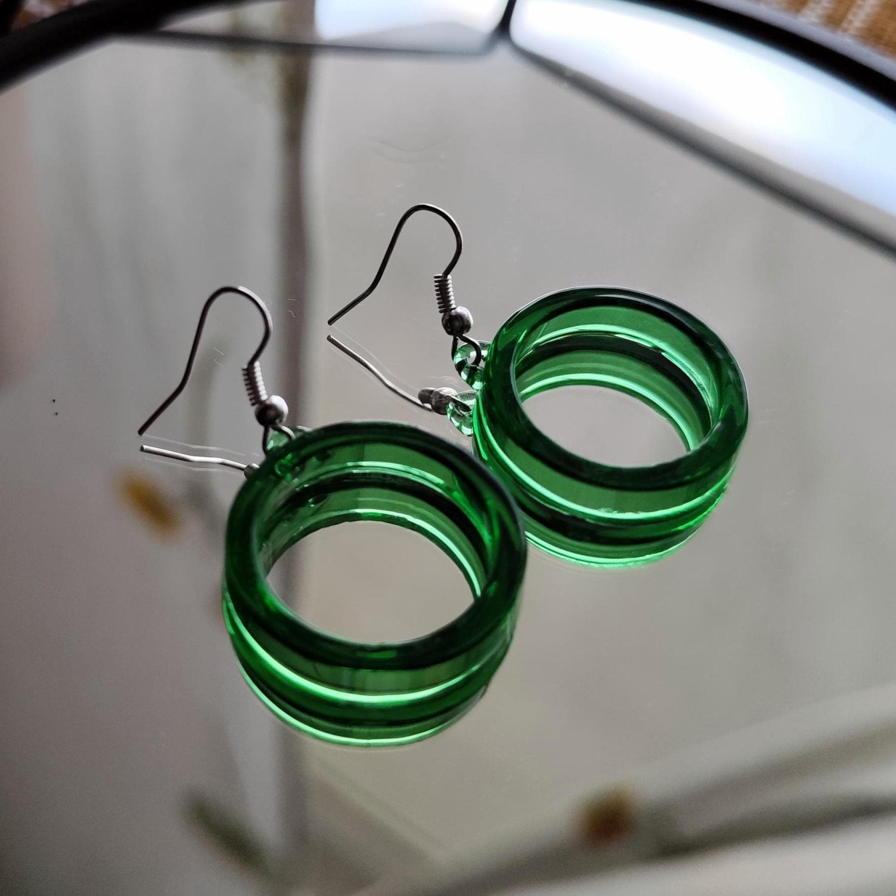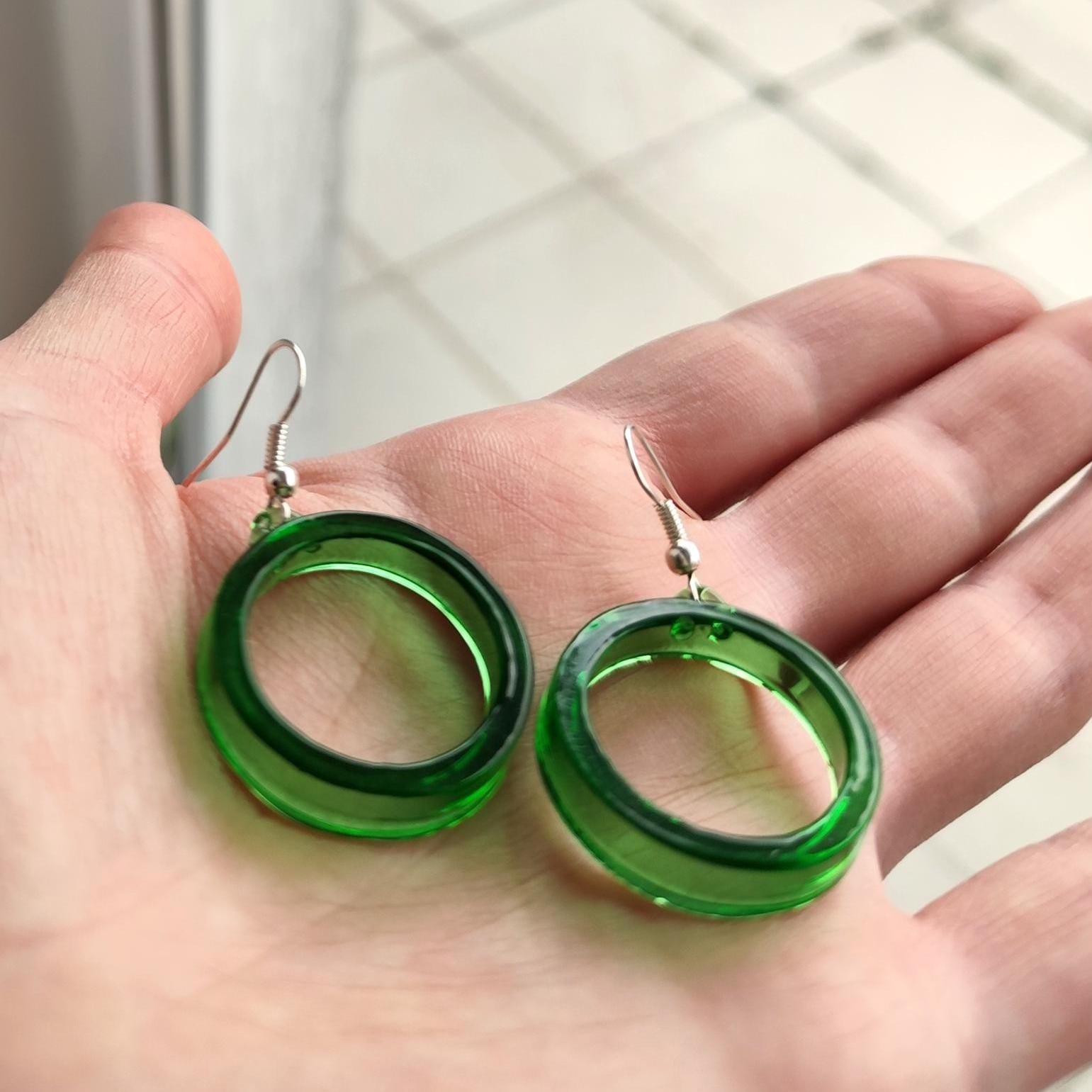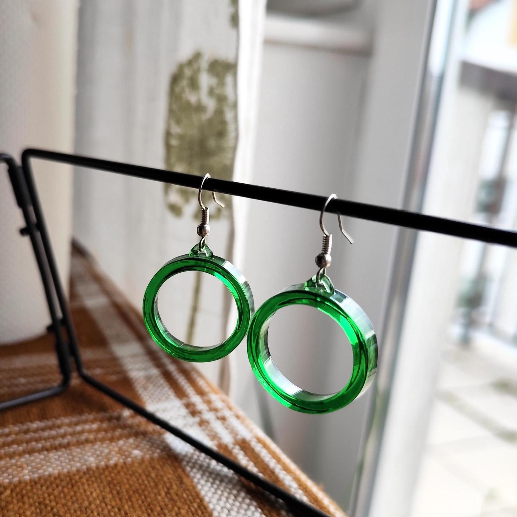 Handblown green glass minimalist hoop earrings all elements are handmade, which ensures the individuality of each product made in the Yadovito workshop. Diameter about 3 cm (1.15 in). Color green.