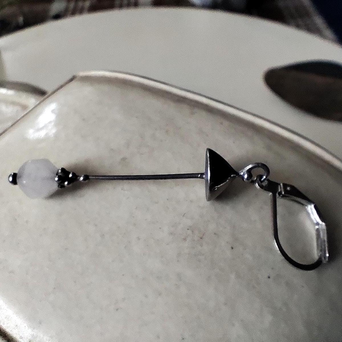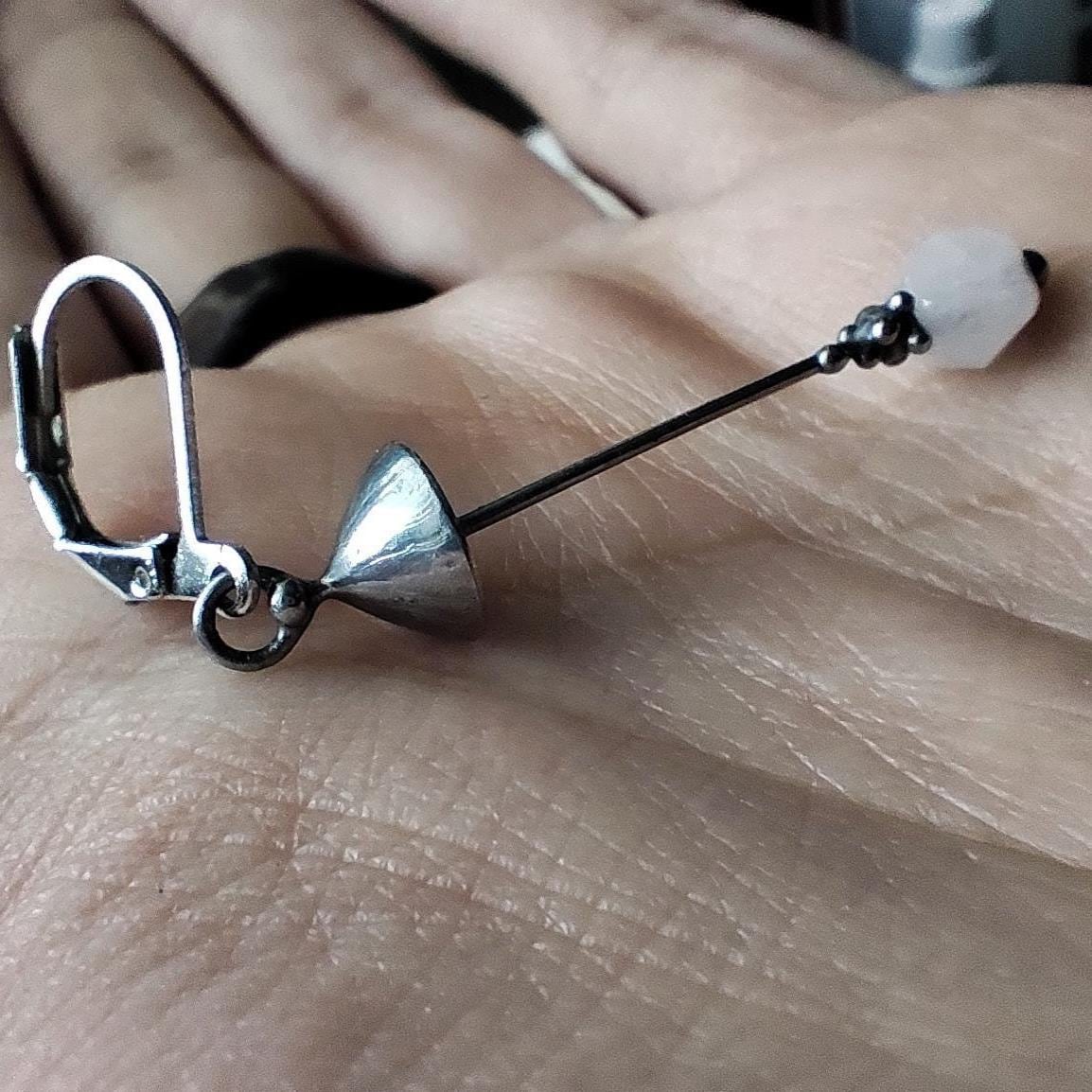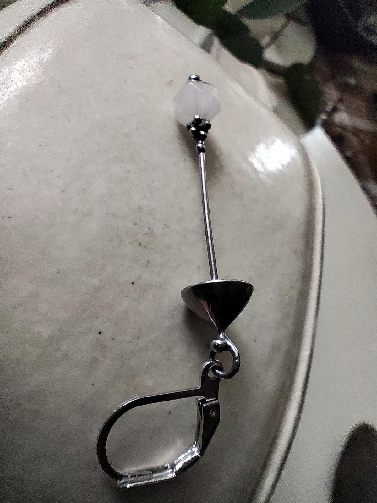 Aesthetic witchcarft magic mushroom one earring handcrafted from copper, pewter, steel and pink quartz. Covered with patina and treated with antioxidant, sanded, polished. Light and sturdy inspired by wild nature fungi single earring. All elements are handmade, which ensures the individuality of each product made in the Yadovito workshop. The copper alloy is polished with a finishing solution to give the jewelry a noble appearance and at the same time so that the metal does not oxidize. Size about 4.5/0.8 cm (1.7 * 0.3 in). Color silver/pink.