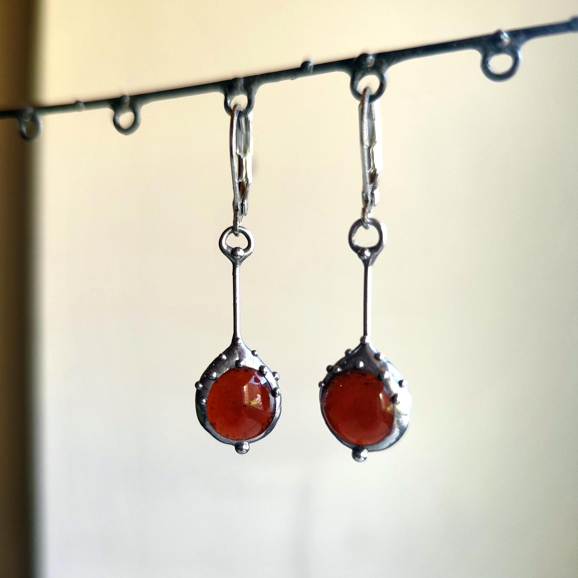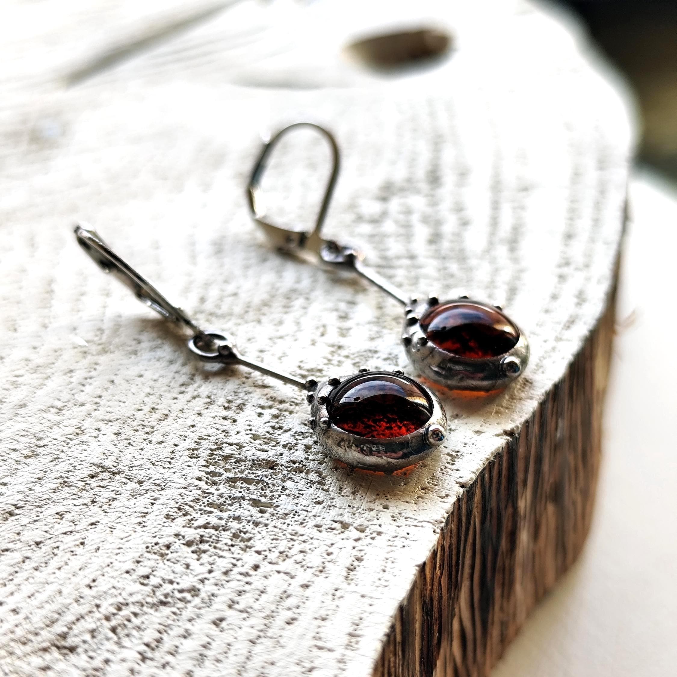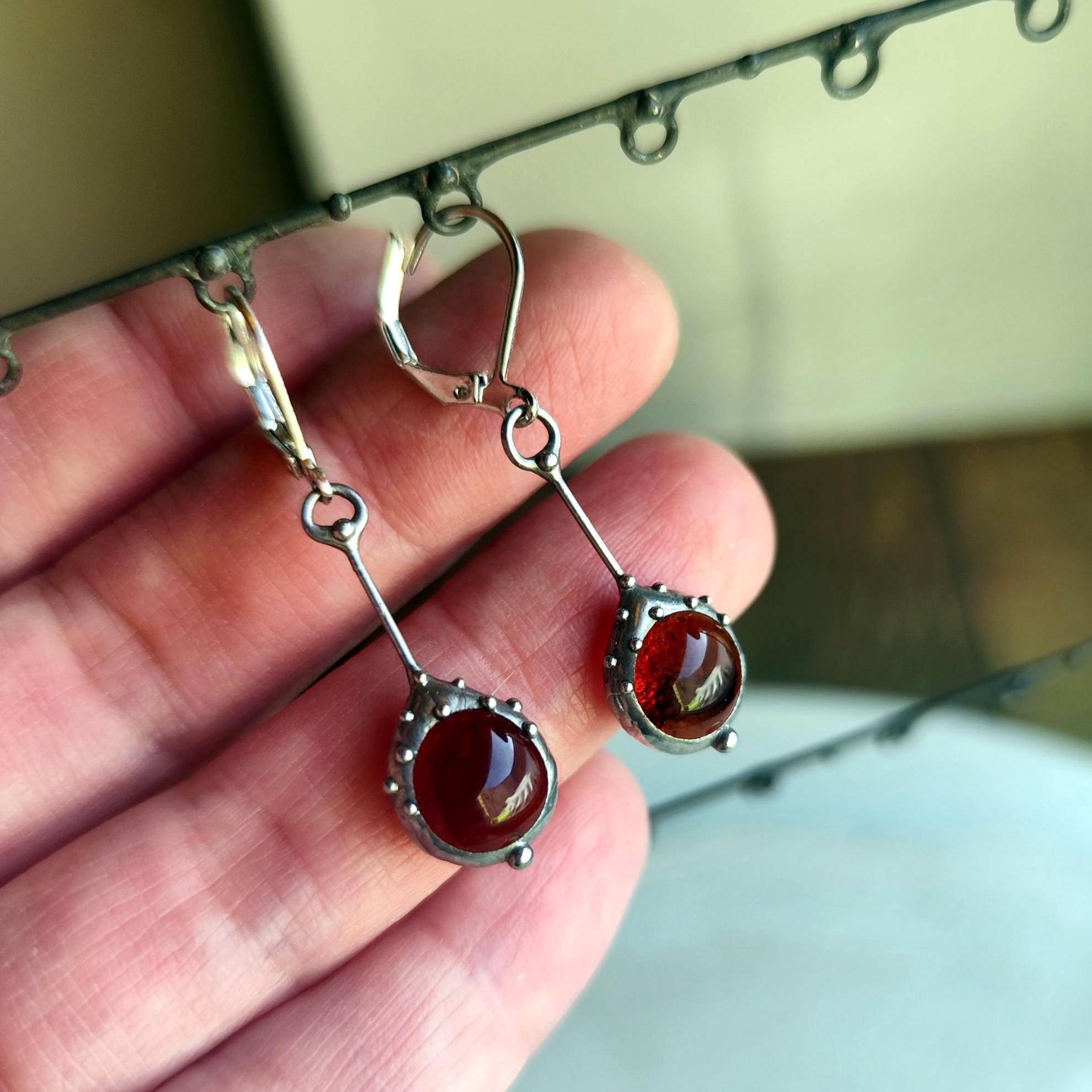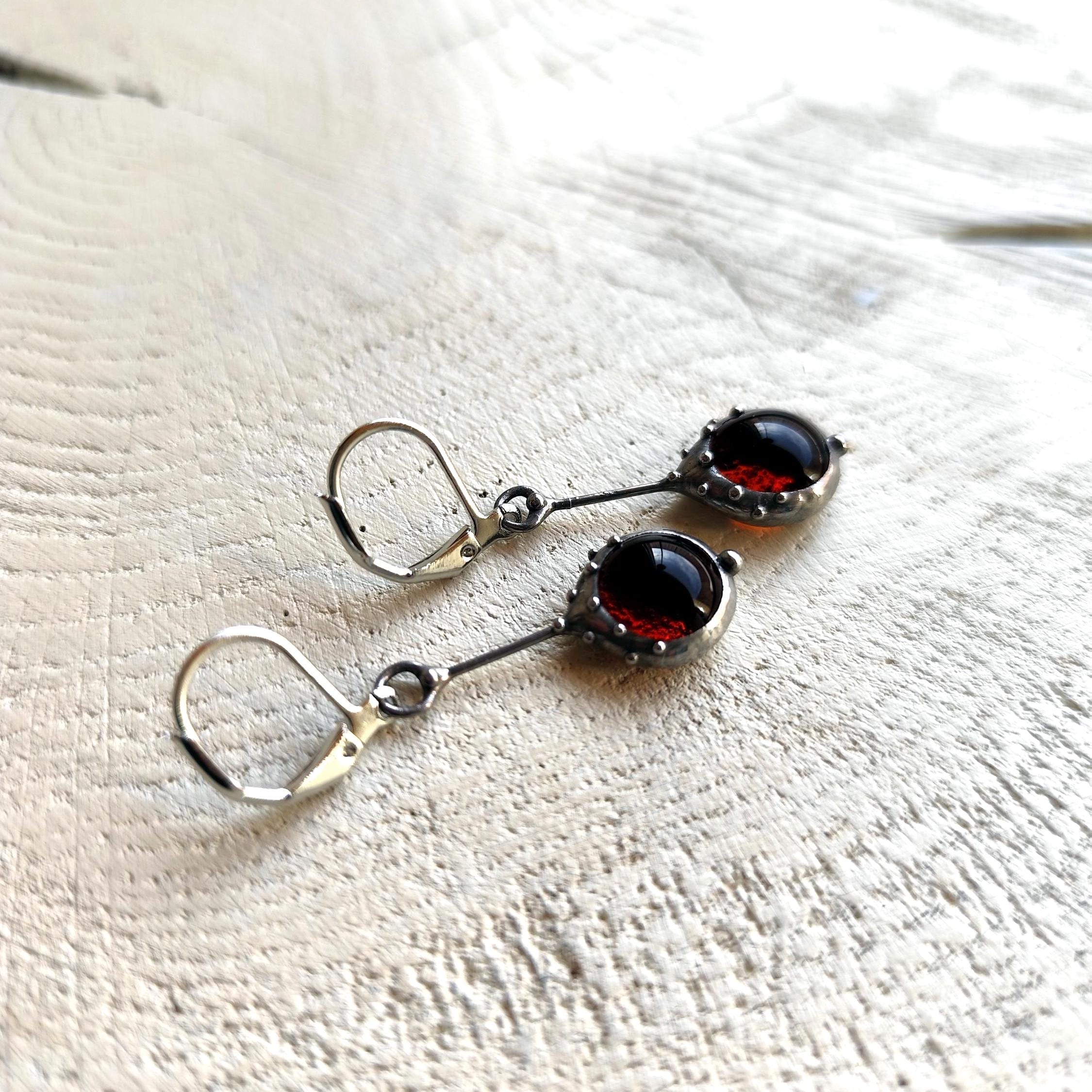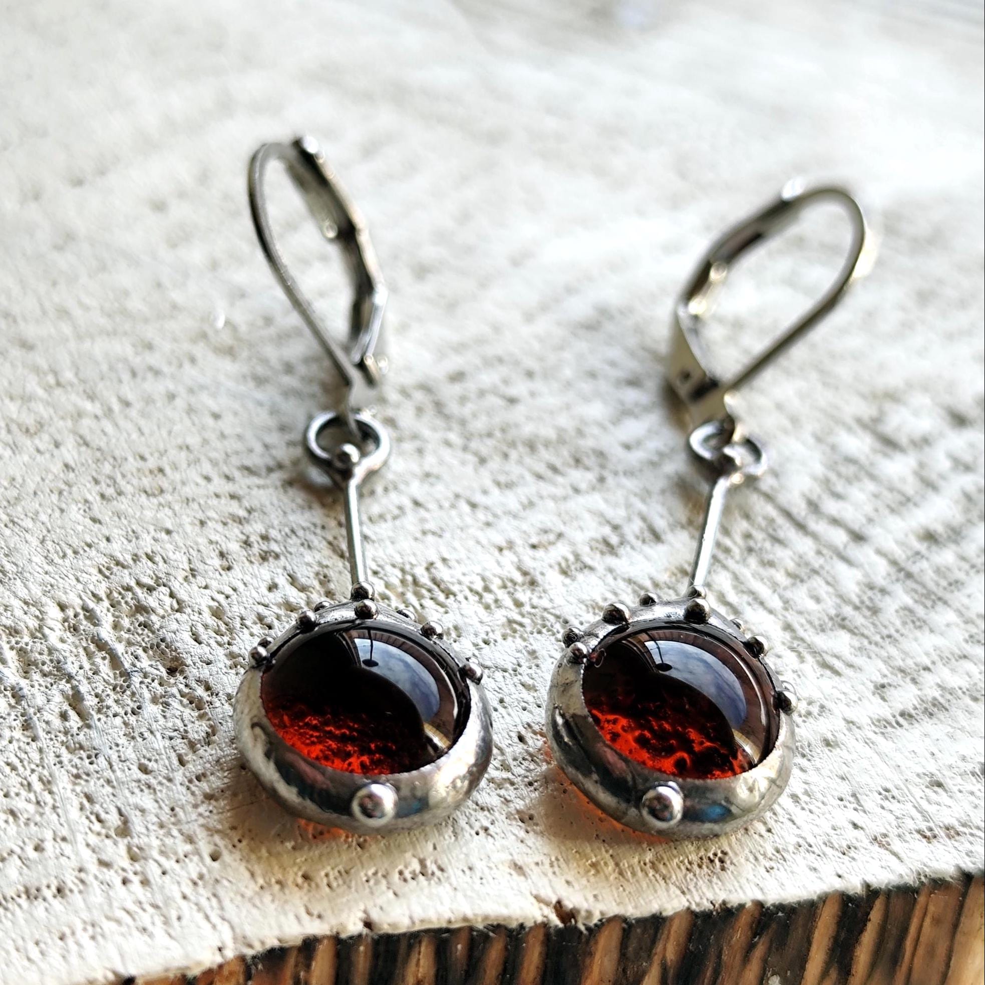 Simple geometry stained glass minimalist earrings handmade from copper, steel, pewter, brown glass. Treated with antioxidant, sanded, polished. Simple and strong author's jewelry earrings. All elements are handmade, which ensures the individuality of each product made in the Yadovito workshop. The copper alloy is polished with a finishing solution to give the jewelry a noble appearance and at the same time so that the metal does not oxidize. Color: silver/brown. Size about 3 * 1 cm (1.1 * 0.4 in).